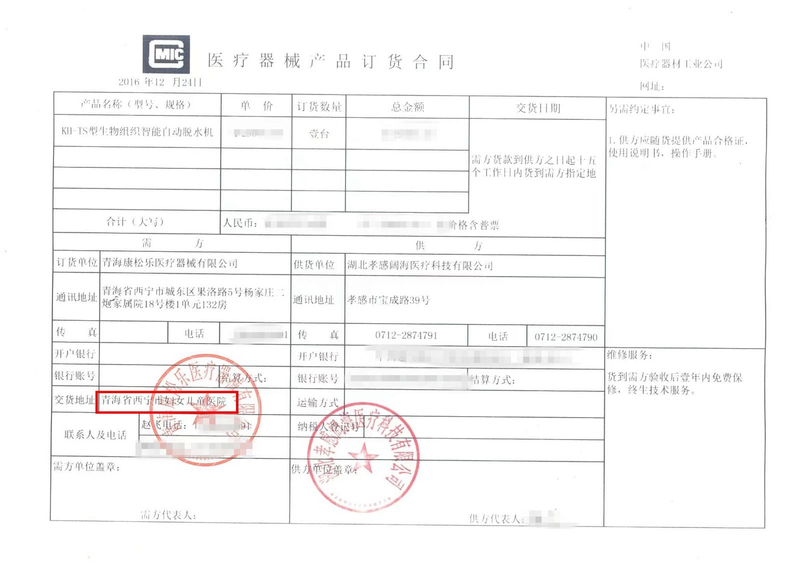 西寧市婦女兒童醫(yī)院采購闊海自動(dòng)組織脫水機(jī)