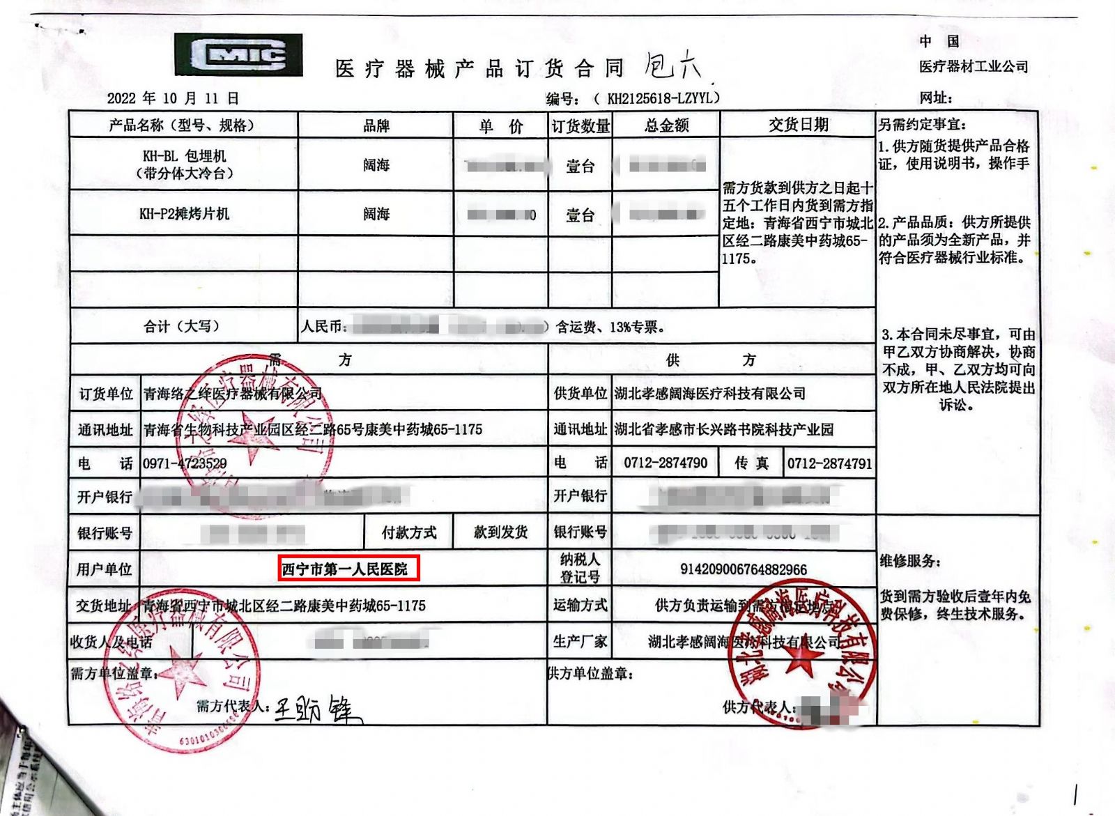 西寧市第一人民醫(yī)院采購(gòu)闊海病理產(chǎn)品