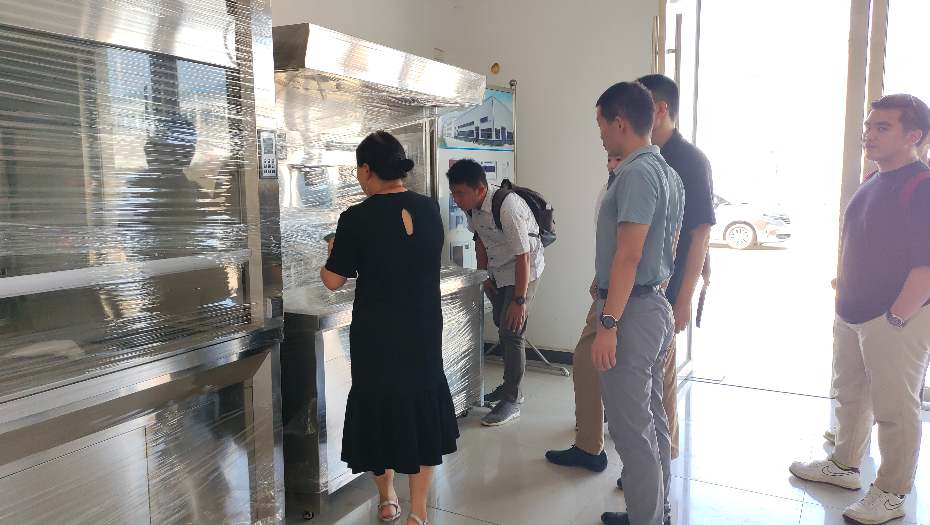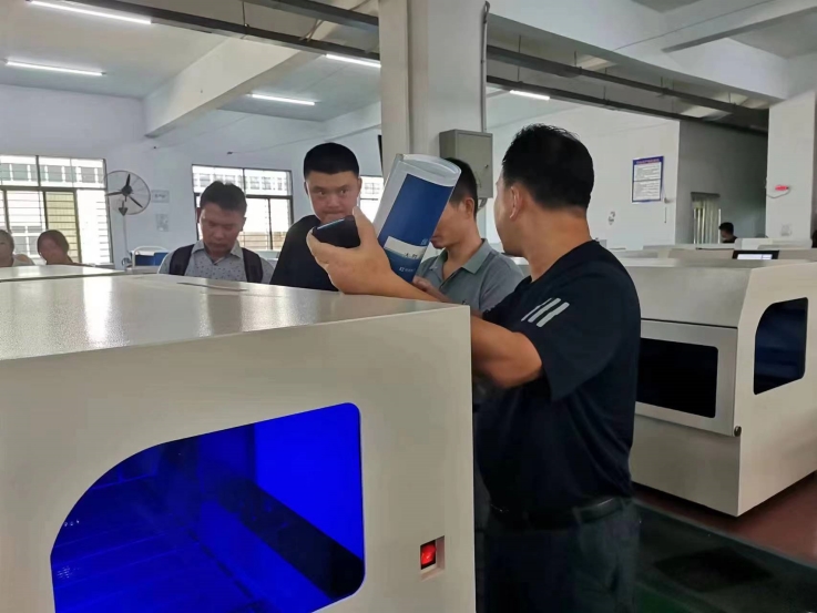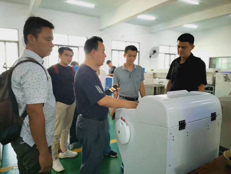 印度尼西亞女老板與隨行翻譯熱烈討論闊海醫(yī)療科技生產(chǎn)的染色封片一體機