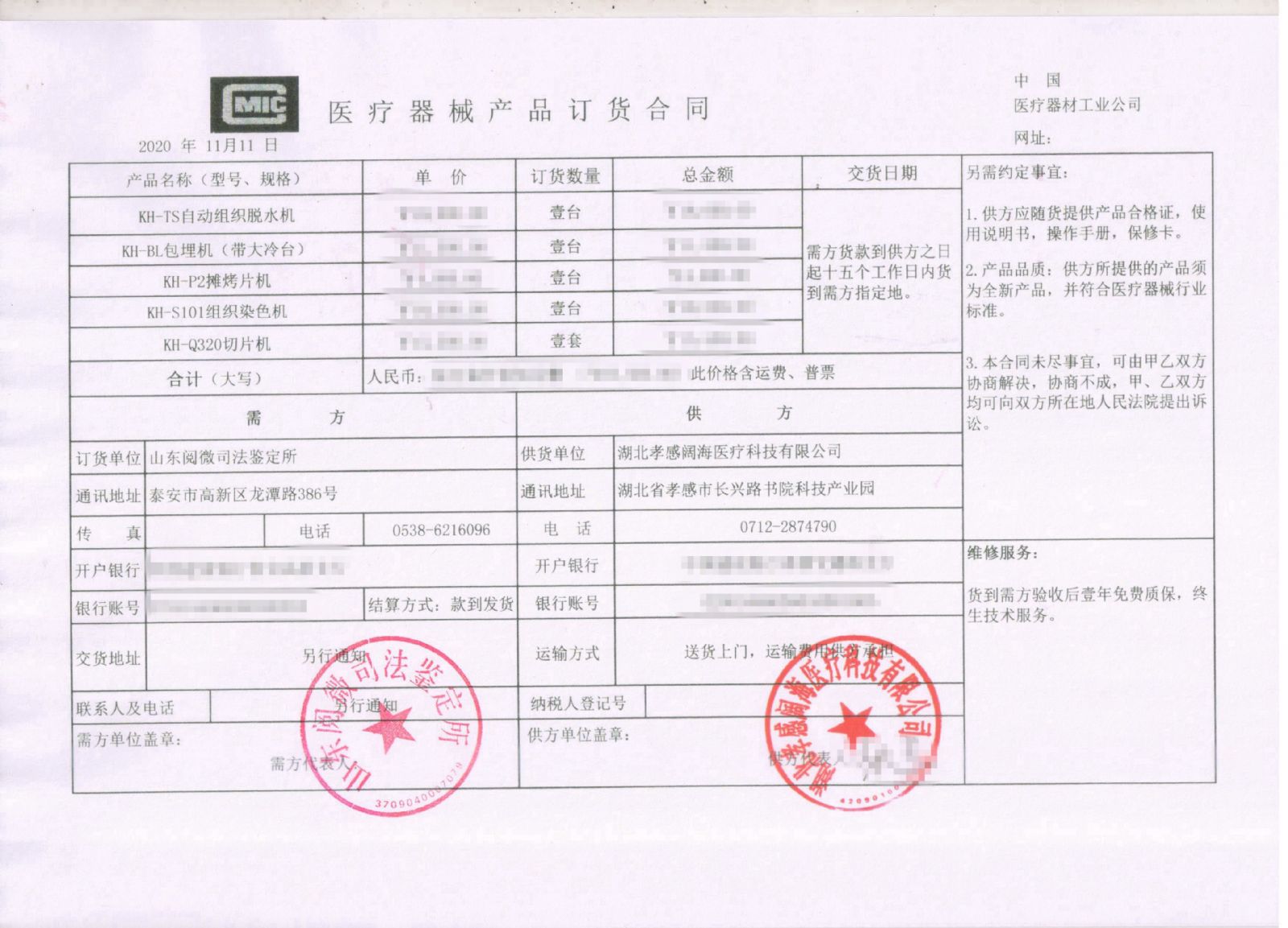 看訂單:12家司法鑒定機(jī)構(gòu)選擇闊海病理儀器,訂單就是有力的證明